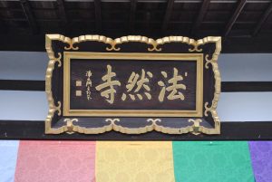 法然寺は京都市内の真ん中、四条烏丸錦小路現在の地名の「元法然寺町」にありました。その後の法然寺は、正応年間(1289~1292)には、ご病気であった第92代伏見天皇からの手厚い加護を受け、極楽殿の称号を賜り、続いて第105代後奈良、第106代正親町天皇の勅願寺となる。その間には足利義政や豊臣秀吉からの扶助も受ける。徳川幕府から三百石と御朱印を拝した。・・・・・・